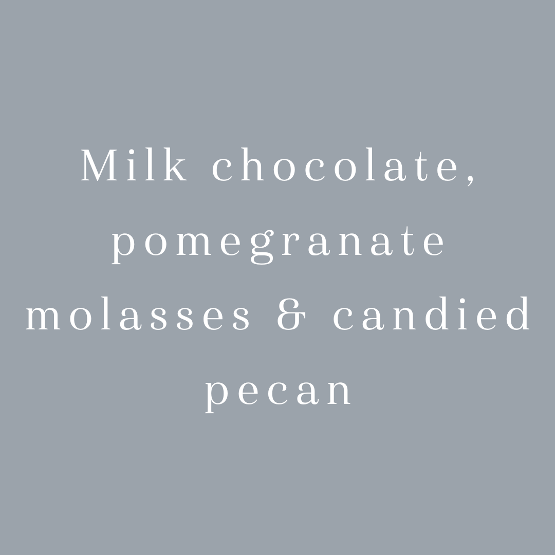Flavour profile: Milk chocolate, pomegranate molasses & candied pecan